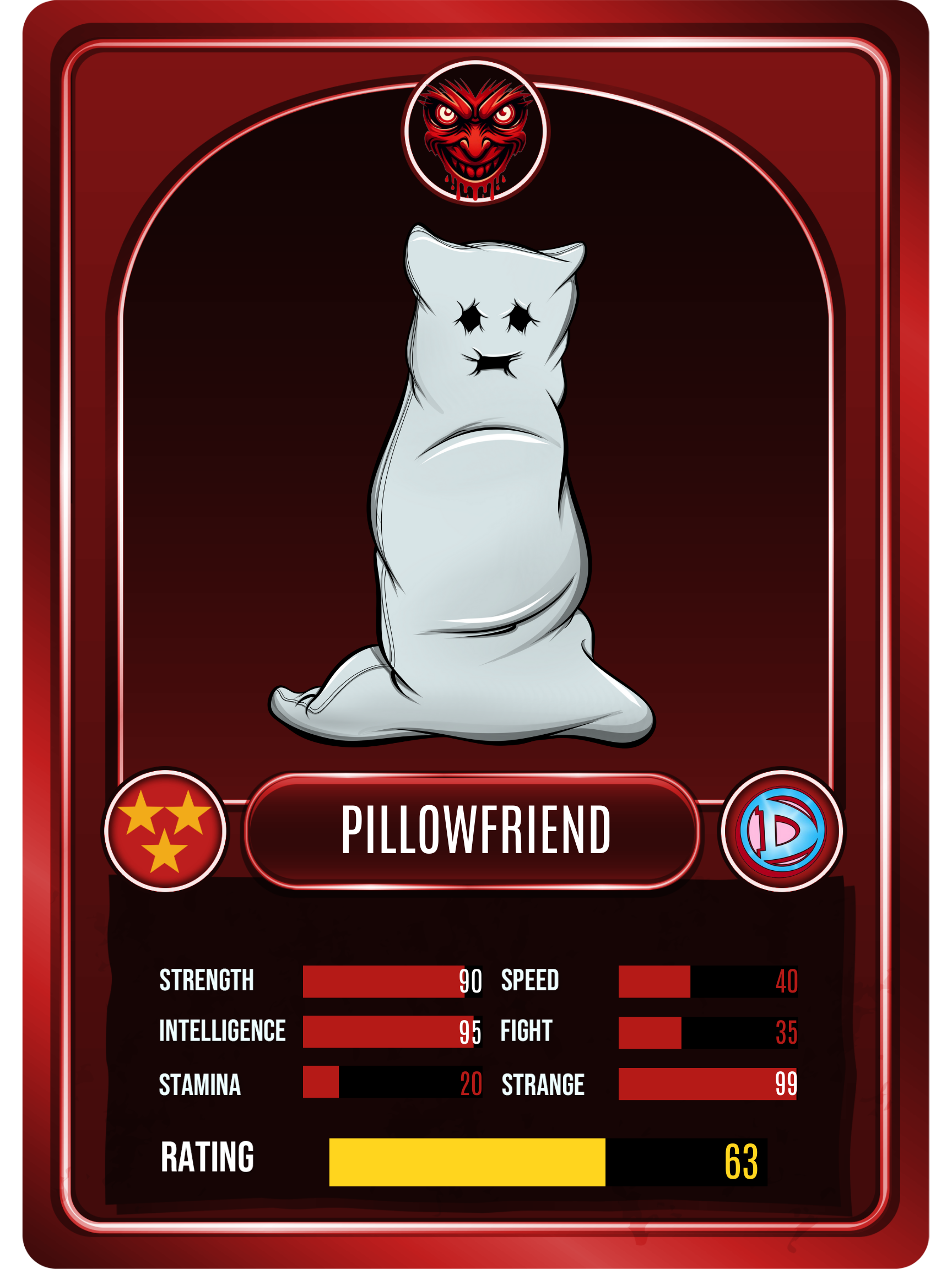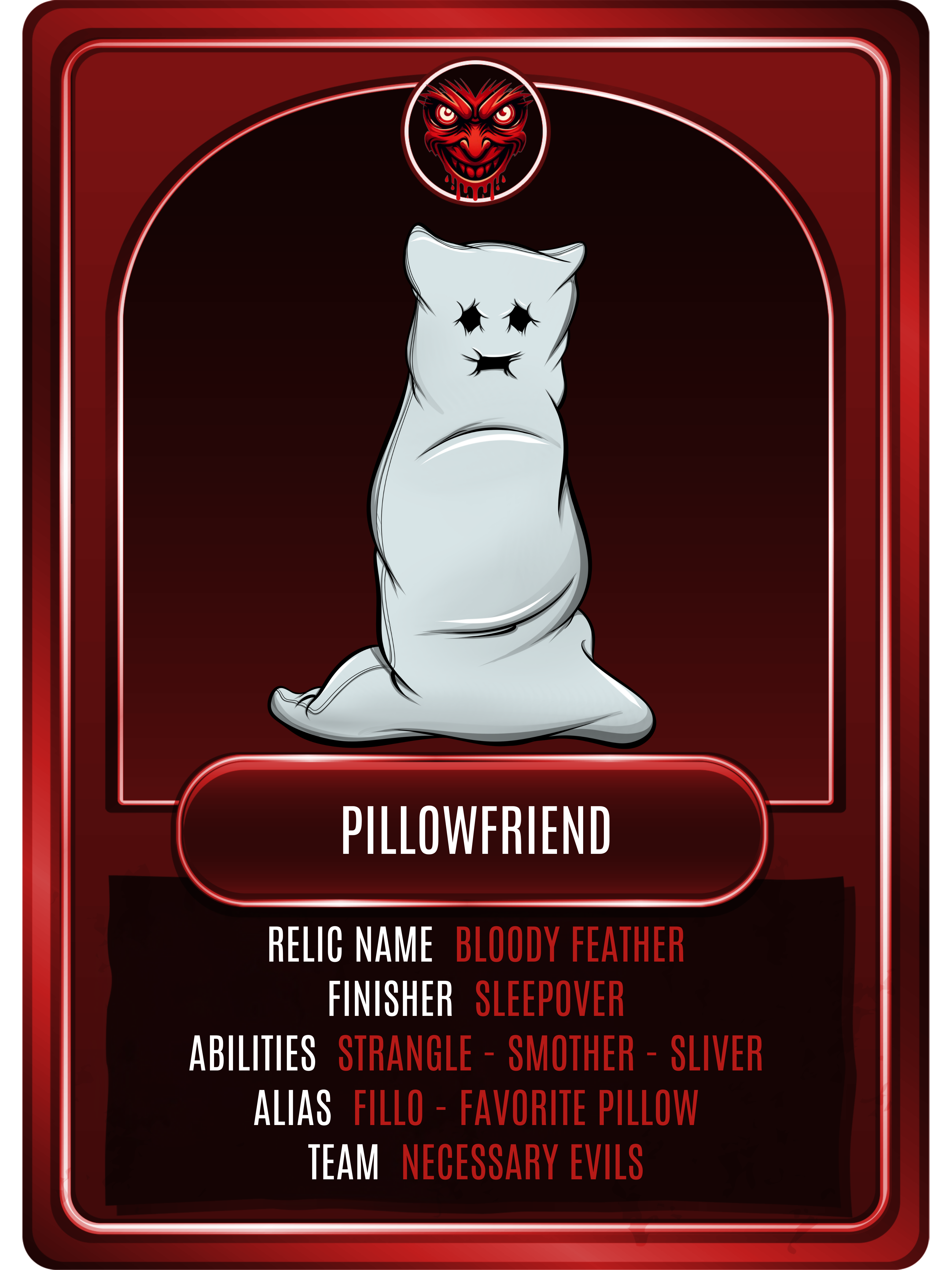 Pillowfriend is among the most heinous villains in the Duperverse. Though unlike other pillows, he has found them to be the perfect disguise as he snuffs out unsuspecting sleepers. He is responsible for many thousands of unexplained deaths, always slithering away before seen. Pillowfriend has been described by many as, "wait, this doesn't feel like my usual pi---"