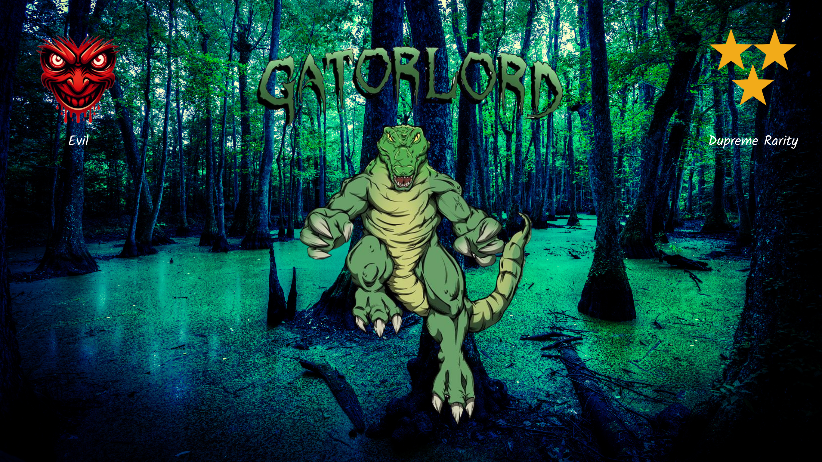 Gatorlord is an ancient, giant beast, commanding an army of ravenous gatorlings. He slaughters indiscriminantly and takes pleasure in the suffering of others. Amongst all villains, his evil is the purest. His hunger is only surpassed by his destructive, conquering nature. Gatorlord has been desribed by many as, "a demon in a gator's body".