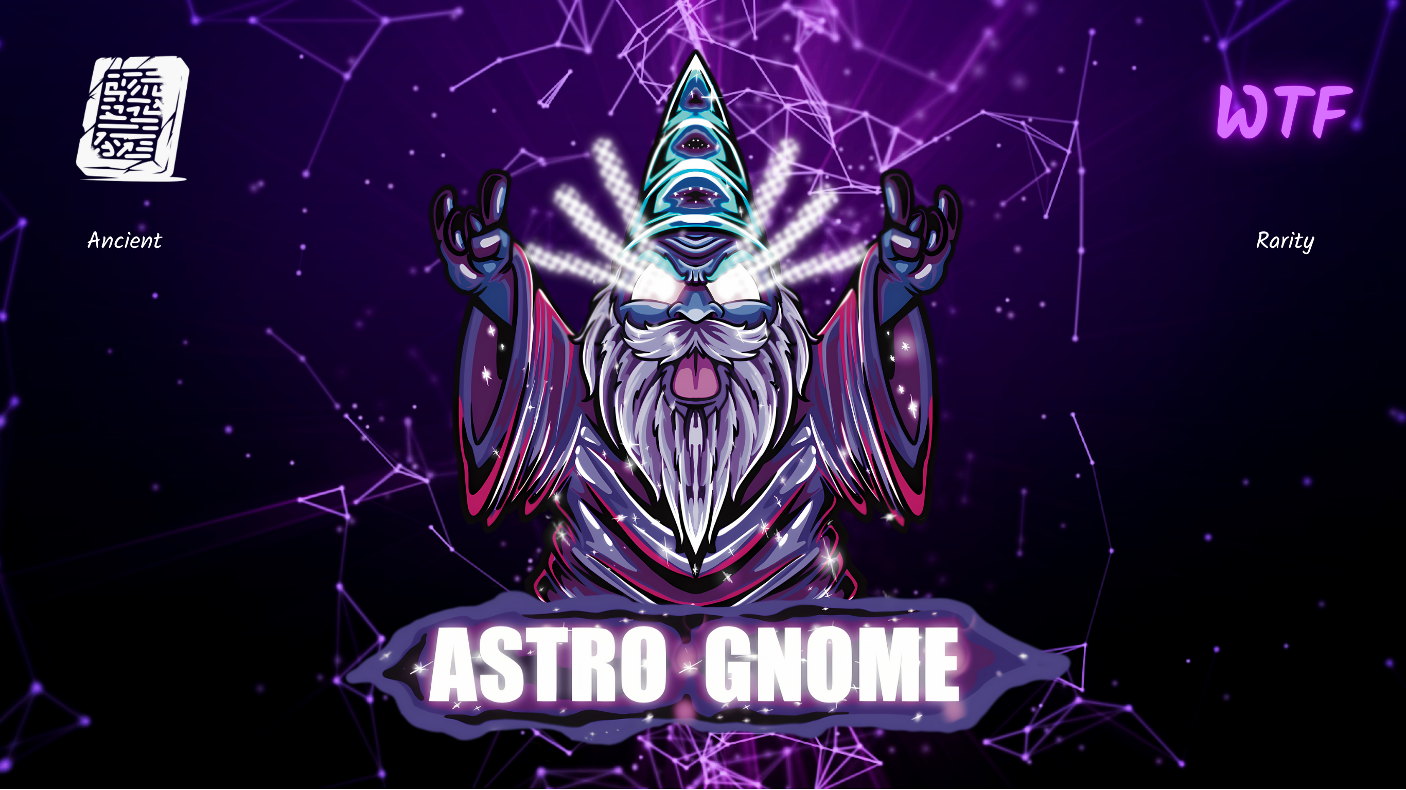 Astro Gnome sees all, knows all, is all. As an omnipotent little guy, his power comes from the universe, an eternal source of information. Powered by a simple human, he transforms the world as he pleases, putting right all the wrongs he sees. Astro Gnome has been described by many as, "aww, his hands are so stubby."
