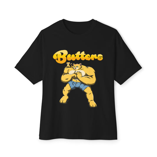 Butters is a gentle soul packaged in a beefy cat-being. Granted power by cosmic forces, he responds only to his name repeated thrice. Once owned by a bad man, Butters now makes certain bad men get owned. Butters has been described by many as, "Uncomfortably cute".