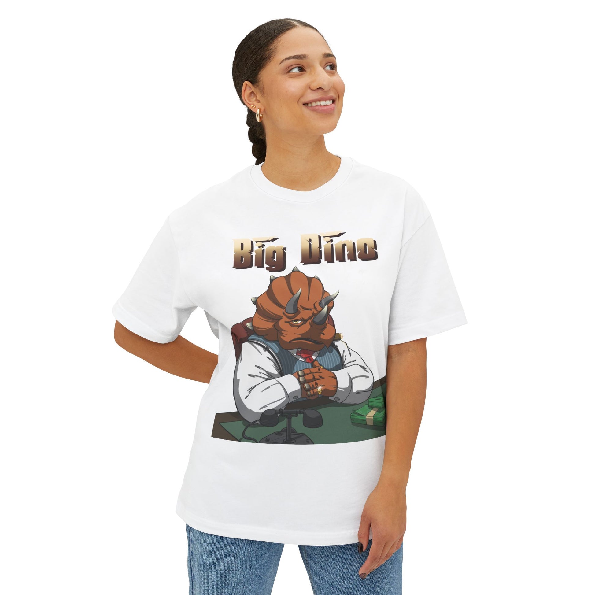 Big Dino crashed into this timeline via Gospel's divine intervention. Though a meek actor and a coward, he assumed the role of the mobster he portrayed and took the throne of a local crime organization. Deep in the role, he began to lose his true self and fall into the power. Big Dino has been described by many as, "not the most convincing dinosaur costume".n abomination".