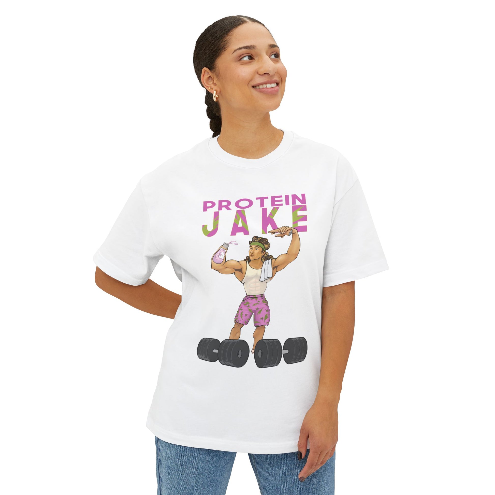 Protein Jake is the ultimate gym bud. Sporting a built in protein synthesizer, he is able to convert the constant replication of protein within his stomach into usable, shareable, delicious shakes. With this power, he can gain muscle at will through months of intense weight-lifting. Protein Jake has been described by many as, "lookin' big, king."